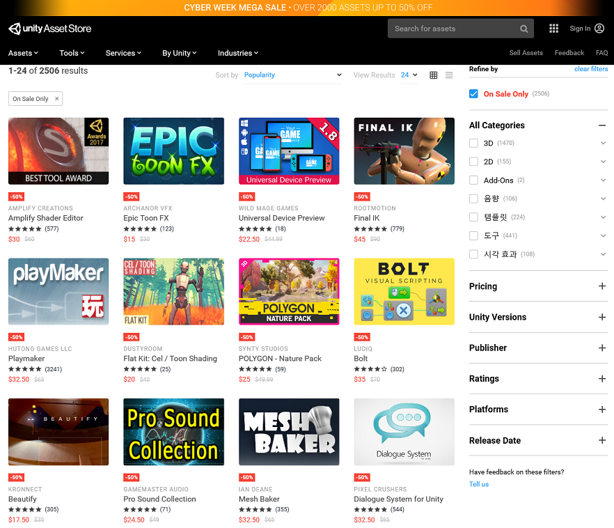 직전 블프세일 대상이던 에셋들이 거의 그대로 있으며,