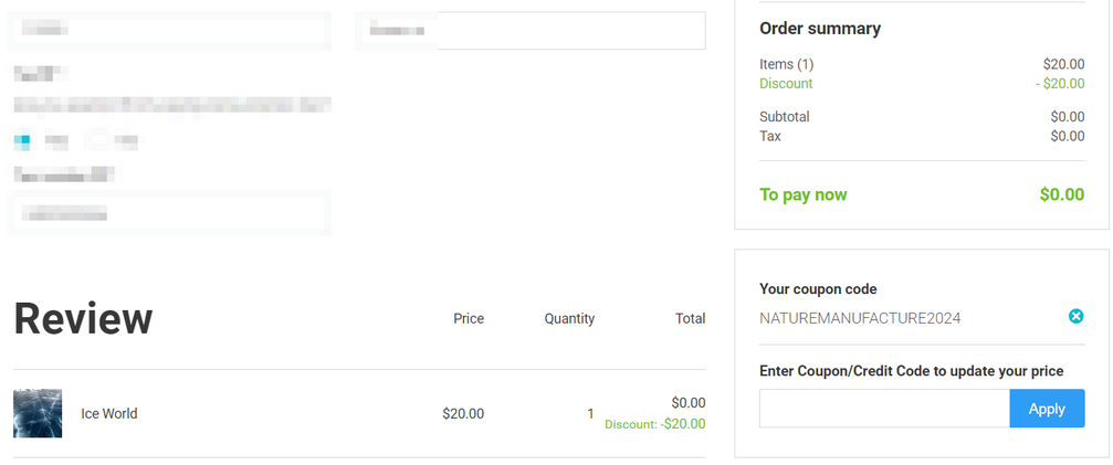 코드를 적용하시면 0원으로 결제 가능해집니다