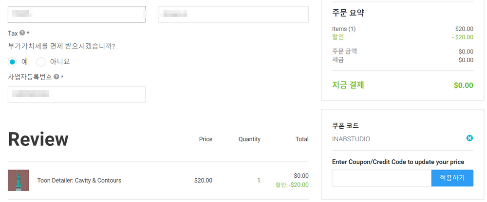 코드를 적용하면 0원으로 결제 가능합니다